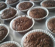 Λιώνουμε σε μπεν μαρί τα 200 γρ. κουβερτούρα μαζί με το βούτυρο. Σε ένα μπολ χτυπάμε τη ζάχαρη, τα αυγά και το αλεύρι και έπειτα προσθέτουμε τη λιωμένη σοκολάτα με το βούτυρο και ανακατεύουμε μέχρι να πάει παντού. Αδειάζουμε το μείγμα στα χάρτινα φορμάκια (τα γεμίζουμε μέχρι τη μέση) και τρίβουμε από πάνω κομματάκια από τα υπόλοιπα 50 γρ. κουβερτούρας. Τοποθετούμε τα φορμάκια σε ταψί και τα ψήνουμε σε προθερμασμένο φούρνο στους 180oC για περίπου 20' (μπορεί και 5΄ λιγότερα αν ο φούρνος σας είναι δυνατός).
