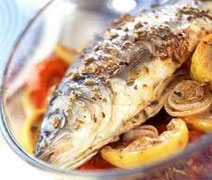 Προθερμαίνουμε το φούρνο στους 200 βαθμούς. Πλένουμε το λαβράκι και το στεγνώνουμε με χαρτί κουζίνας. Απλώνουμε δύο μεγάλα κομμάτια χαρτί ψησίματος παράλληλα και από πάνω άλλα δύο σταυρωτά. Βάζουμε πάνω στο αυτοσχέδιο ταψάκι τα μυρωδικά, τα σκόρδα και τις φέτες του λεμονιού. Ακουμπάμε επάνω τους το ψάρι καλά αλατισμένο μέσα και έξω, λαδώνουμε όλη την επιφάνεια του και κλείνουμε προσεκτικά το χαρτί σε πακέτο. Το ακουμπάμε σε ένα ταψάκι, προσθέτουμε 1 ποτήρι νερό και το ψήνουμε 45-60 λεπτά.